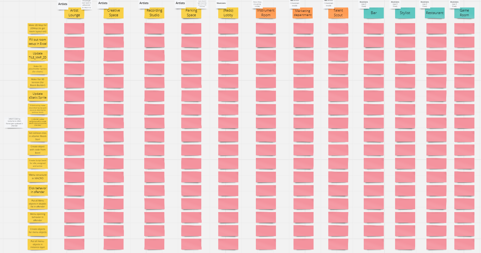 The big “setup” I worked on, is in how I create the rooms for the game. Building and upgrading rooms is a big part of the game (and the management of your label), so I felt like it doesn’t make sense to just go “room by room” for every development (every time updating all the connected objects and scripts, when I’m on a new room). So I wrote up, which code I have to update to create a new room and will now try to go stage by stage, instead of room by room. At least I will have the setup for all rooms programmed then and won’t need to update my tileset (as an example) every few days. It also means, that creating the rooms and their interactions will be my next big project.