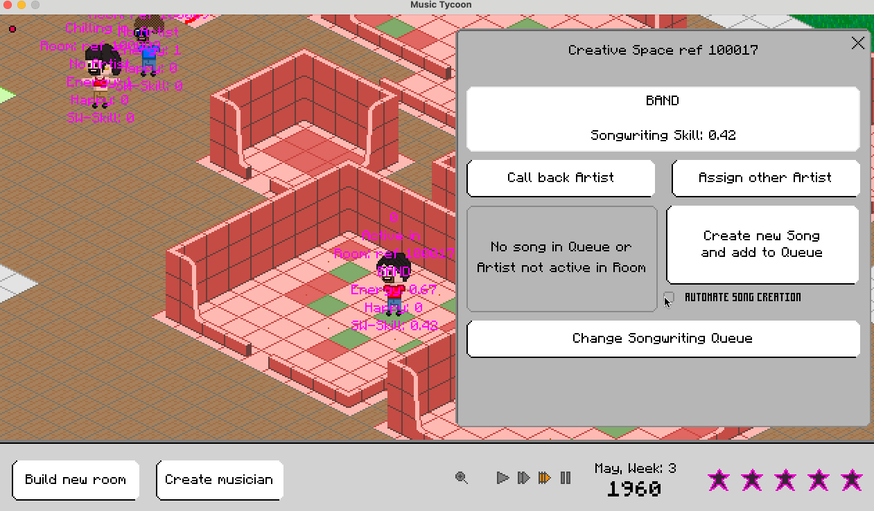 Song creation automation is done. The name generator (based on genre and theme) could use some fine-tuning, but it’s actually already pretty fun :D